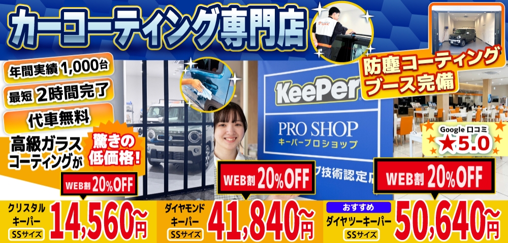 私達キーパープロショップは、豊橋市・豊川市・田原市・蒲郡市・湖西市エリアのカーコーティング専門店として、日本ダントツのカーコーティングブランド、キーパープロショップとして認定を受けております!