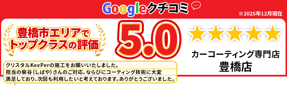 これは豊橋市・豊川市・田原市・蒲郡市・湖西市エリアの中でもトップクラスのカーコーティング実績を誇ります!